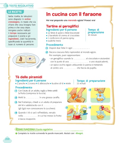 Completa le ricette scrivendo le parole mancanti. Aiutati con i disegni.