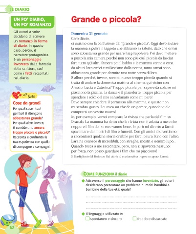 nel diario. E allora perché, invece, sono di nuovo troppo piccola quando si
