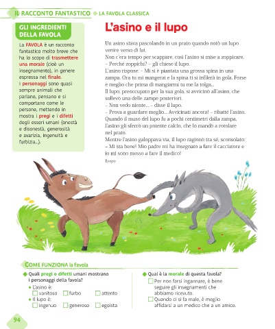 La FAVOLA è un racconto Un asino stava pascolando in un prato quando notò un lupo