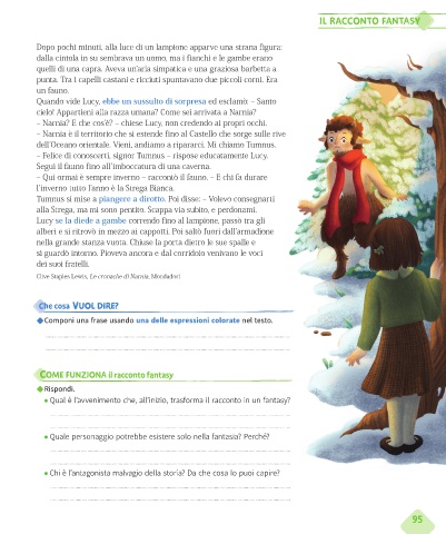 Lucy entra nell’armadio Dopo pochi minuti, alla luce di un lampione apparve una strana figura: