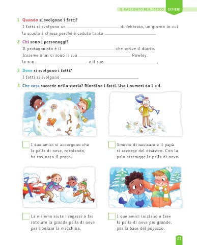 4 Che cosa succede nella storia? Riordina i fatti. Usa i numeri da 1 a 4.