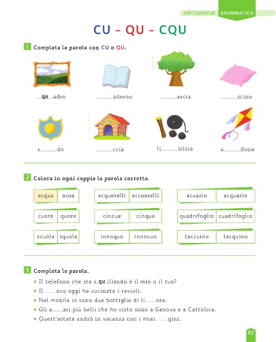 1 Completa le parole con CU o QU.