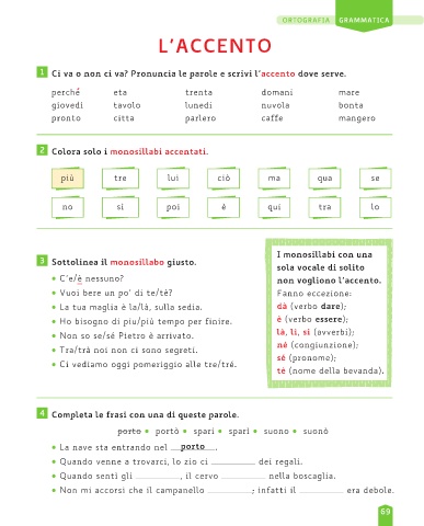 2 Colora solo i monosillabi accentati.