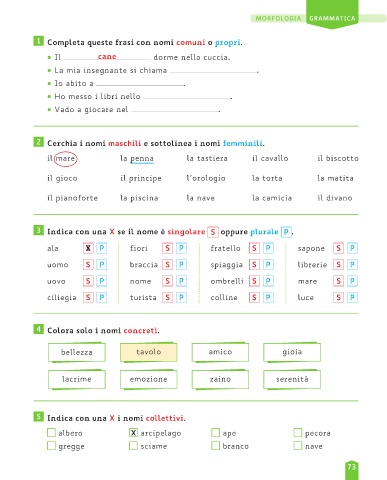 3 Indica con una X✗ se il nome è singolare S oppure plurale P .