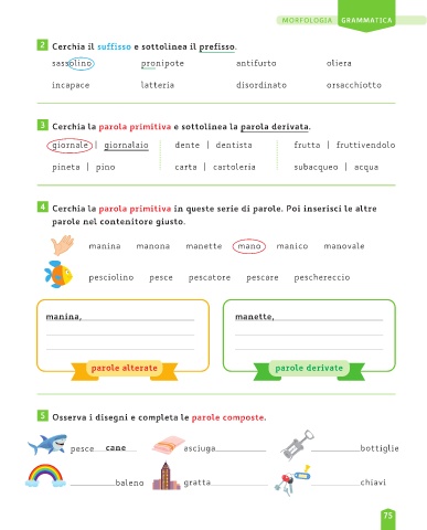 2 Cerchia il suffisso e sottolinea il prefisso.