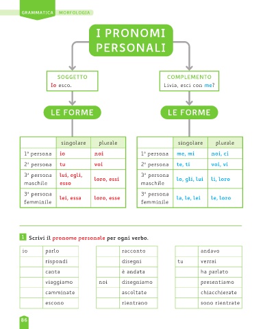 1 Scrivi il pronome personale per ogni verbo.