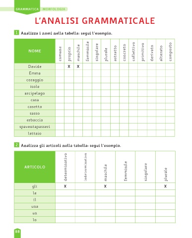 2 Analizza gli articoli nella tabella: segui l’esempio.
