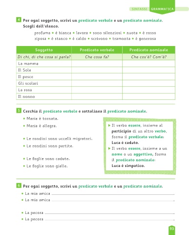 4 Per ogni soggetto, scrivi un predicato verbale e un predicato nominale.