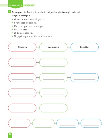 4 Scomponi le frasi e inseriscile al posto giusto negli schemi.