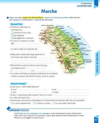 Dopo aver letto pagina 46 del Sussidiario , osserva la carta fisico-politica delle Marche,