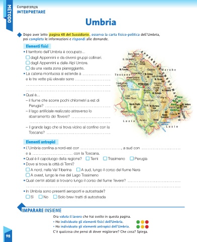 Dopo aver letto pagina 48 del Sussidiario , osserva la carta fisico-politica dell’Umbria,