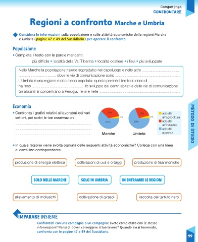 e Umbria ( pagine 47 e 49 del Sussidiario ) per operare il confronto.