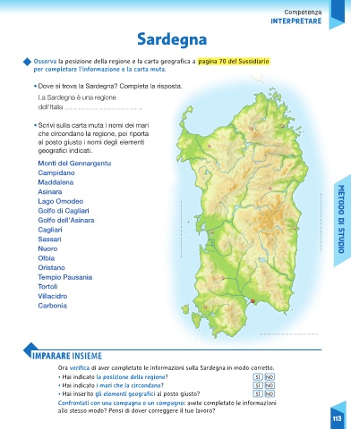 Ora verifica di aver completato le informazioni sulla Sardegna in modo corretto.
