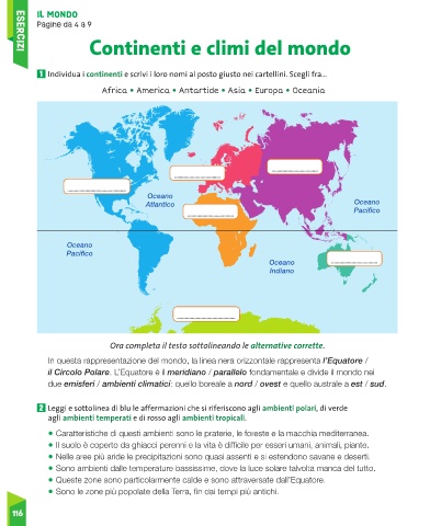 1 Individua i continenti e scrivi i loro nomi al posto giusto nei cartellini. Scegli fra…