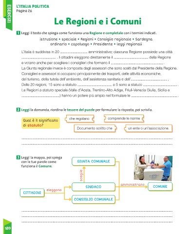 1 Leggi il testo che spiega come funziona una Regione e completalo con i termini indicati.