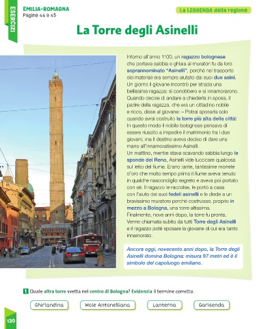 1 Quale altra torre svetta nel centro di Bologna? Evidenzia il termine corretto.