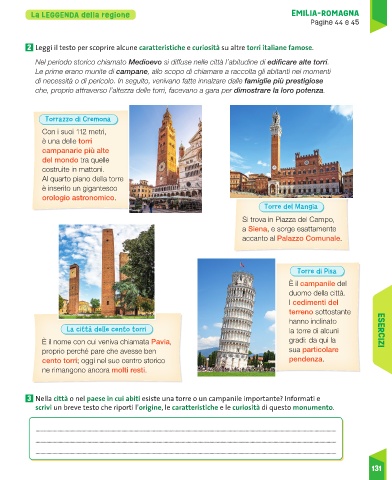 2 Leggi il testo per scoprire alcune caratteristiche e curiosità su altre torri italiane famose.