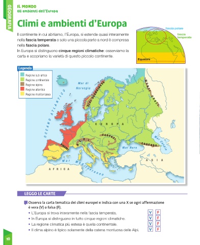 Osserva la carta tematica dei climi europei e indica con una X se ogni affermazione