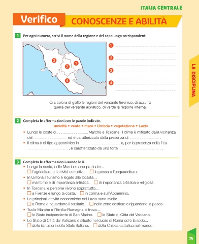 1 Per ogni numero, scrivi il nome della regione e del capoluogo corrispondenti.