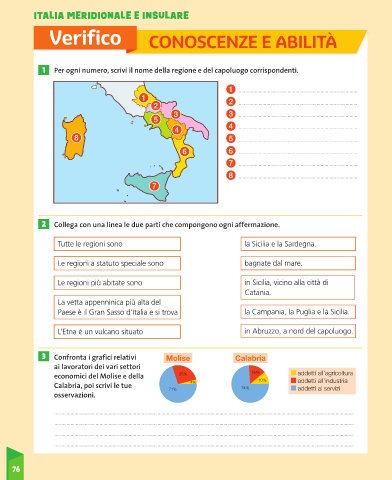 1 Per ogni numero, scrivi il nome della regione e del capoluogo corrispondenti.
