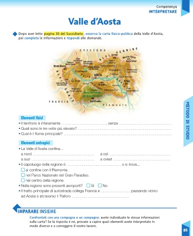 Dopo aver letto pagina 30 del Sussidiario , osserva la carta fisico-politica della Valle d’Aosta,