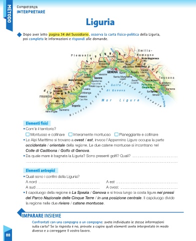 Dopo aver letto pagina 34 del Sussidiario , osserva la carta fisico-politica della Liguria,