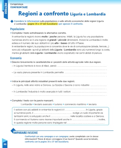 e Lombardia ( pagine 35 e 37 del Sussidiario ) per operare il confronto.
