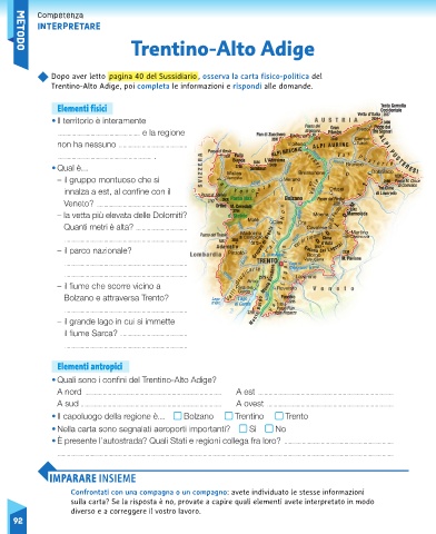 Trentino-Alto Adige, poi completa le informazioni e rispondi alle domande.