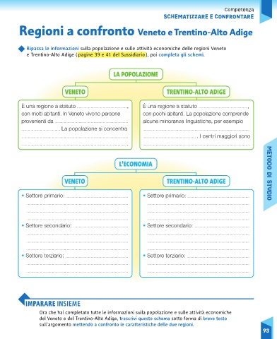 e Trentino-Alto Adige ( pagine 39 e 41 del Sussidiario ), poi completa gli schemi.