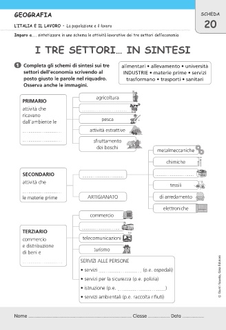 Imparo a... sintetizzare in uno schema le attività lavorative dei tre settori dell’economia