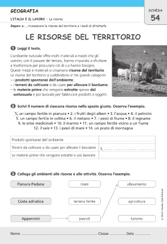 Imparo a... riconoscere le risorse del territorio e i modi di sfruttarle