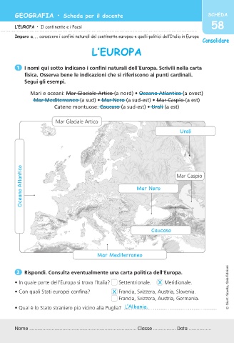 Imparo a... conoscere i confini naturali del continente europeo e quelli politici dell’Italia in Europa
