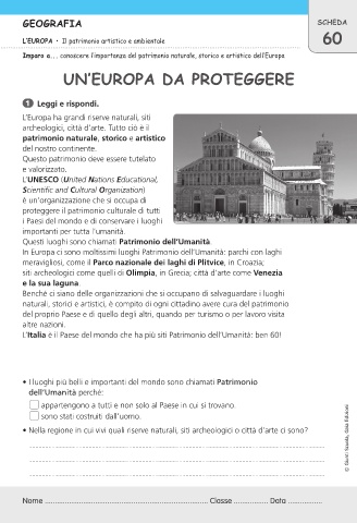 Imparo a... conoscere l’importanza del patrimonio naturale, storico e artistico dell’Europa