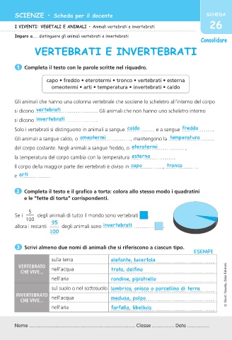 Imparo a... distinguere gli animali vertebrati e invertebrati