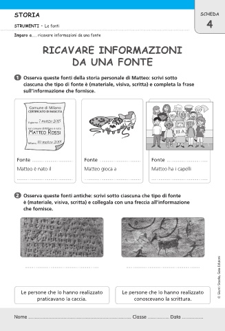 1 Osserva queste fonti della storia personale di Matteo: scrivi sotto