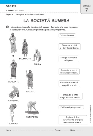 1 I disegni mostrano le classi sociali presso i Sumeri e che cosa facevano