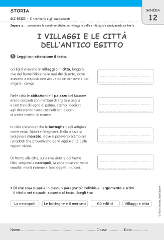 Imparo a... conoscere le caratteristiche dei villaggi e delle città egizie analizzando un testo