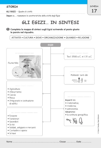 1 Completa la mappa di sintesi sugli Egizi scrivendo al posto giusto