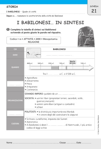 • Ai Babilonesi si deve il ..................................... di Hammurabi, il più antico © Giunti Scuola, Gaia Edizioni