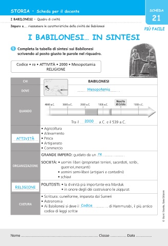 • Ai Babilonesi si deve il ..................................... di Hammurabi, il più antico © Giunti Scuola, Gaia Edizioni