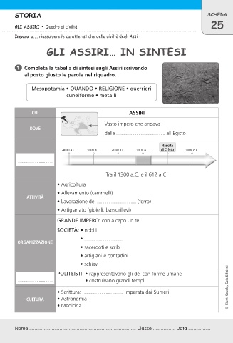 1 Completa la tabella di sintesi sugli Assiri scrivendo