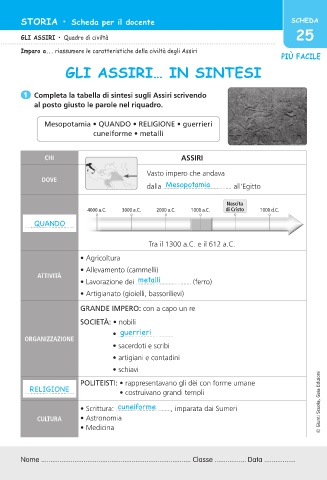 1 Completa la tabella di sintesi sugli Assiri scrivendo