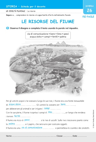 Il fiume era ricco di ...................................... e le rive di uccelli. Sulle rive crescevano piante come © Giunti Scuola, Gaia Edizioni