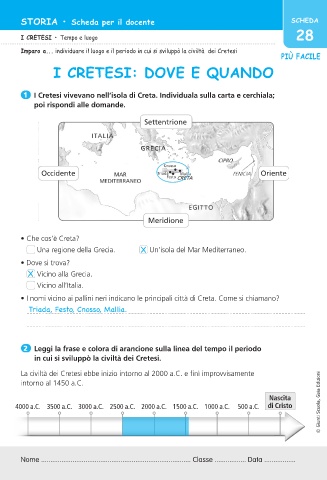 1 I Cretesi vivevano nell’isola di Creta. Individuala sulla carta e cerchiala;