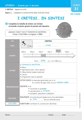 Imparo a... riassumere le caratteristiche della civiltà dei Cretesi
