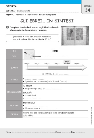 1 Completa la tabella di sintesi sugli Ebrei scrivendo