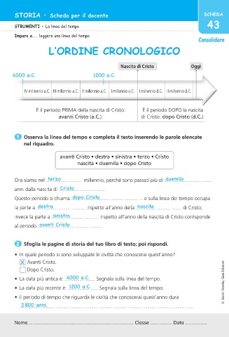 1 Osserva la linea del tempo e completa il testo inserendo le parole elencate