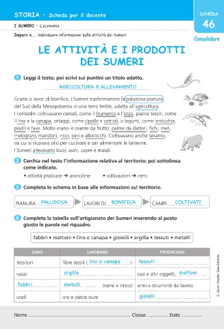 Imparo a... individuare informazioni sulle attività dei Sumeri