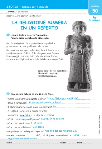 • Adesso siamo nel ...................... d.C., quindi questo reperto ha circa ...................... anni.