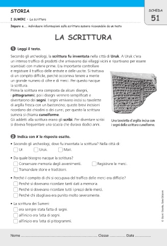 Imparo a... individuare informazioni sulla scrittura sumera ricavandole da un testo